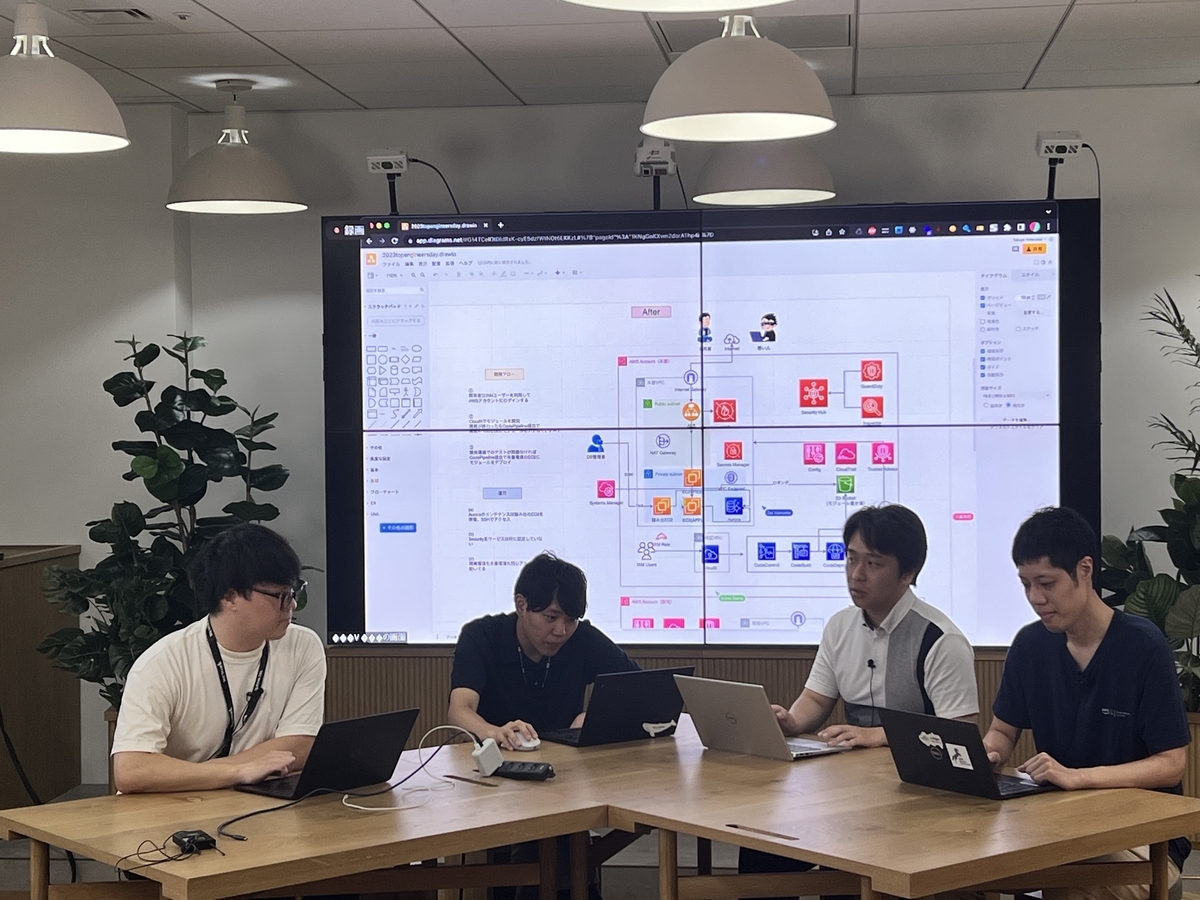 ライブアーキテクティングでは、現在AWSが「security is our top priority」と掲げていることを受け、「AWSセキュリティ」を題材に、登壇者が既存のアーキテクチャ図を共同編集しながら、「よりセキュアなシステム構成にするためにはどのようなサービスをどのように活用すれば良いか」について解説しました。